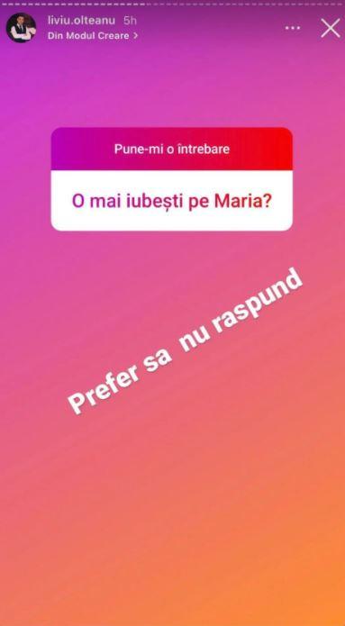 ”O mai iubești pe Maria?”, a fost una dintre întrebările pe care Liviu Olteanu le-a primit în secțiune deschisă pe Instagram.