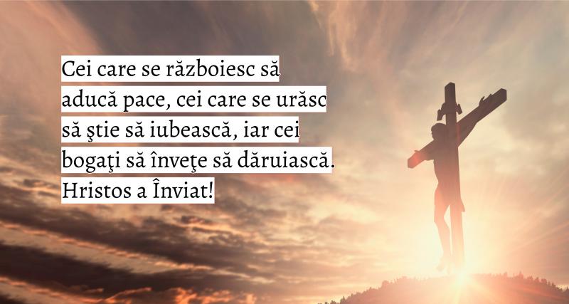 - Cei care se războiesc să aducă pace, cei care se urăsc să ştie să iubească, iar cei bogaţi să înveţe să dăruiască. Hristos a înviat! Paște binecuvântat.