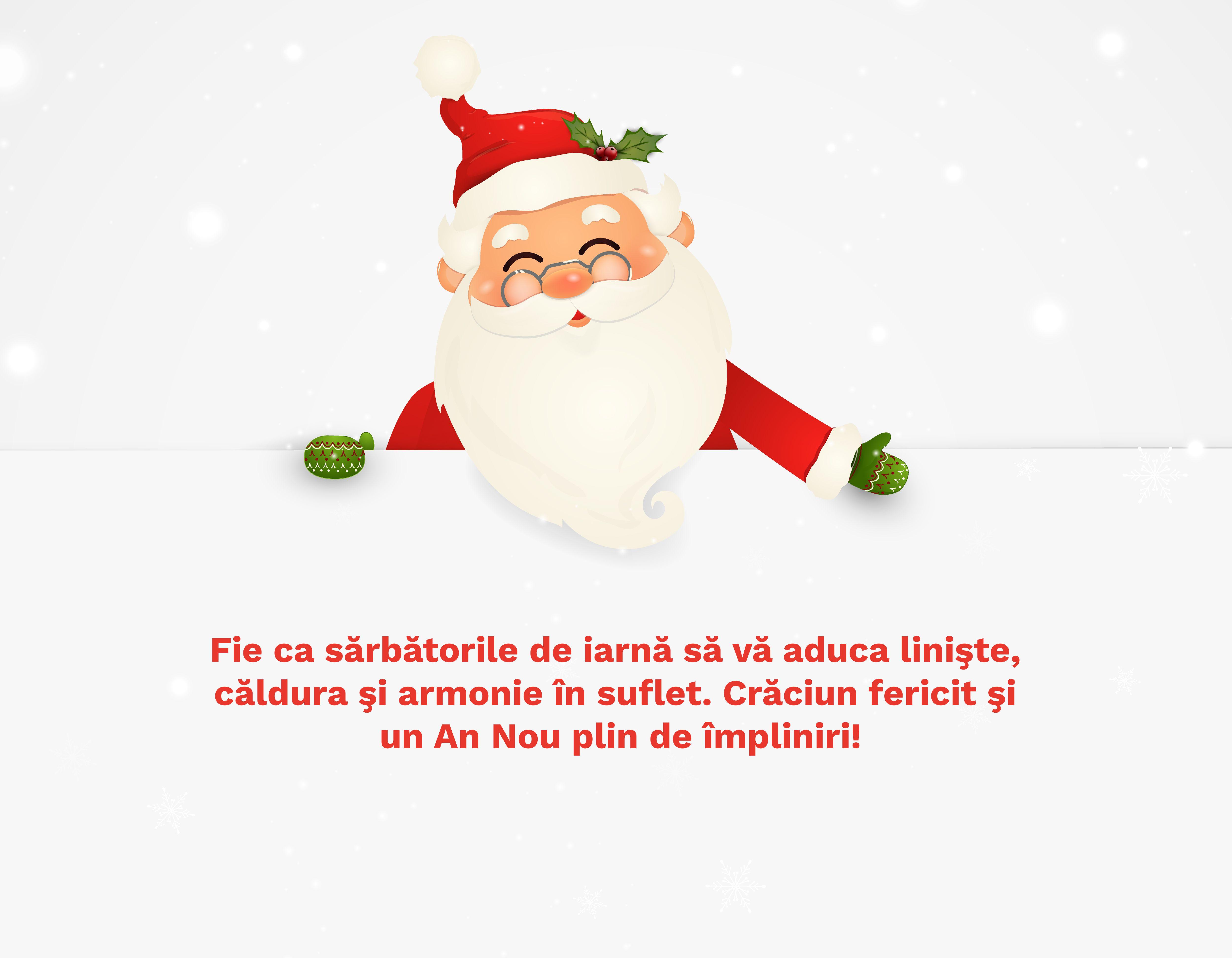 - În Ajun, să primiti de la Moș Crăciun pace și sănătate și în casă să aveți de toate. Sărbători fericite!