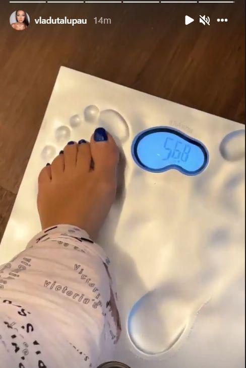 Vizibil afectată emoțional de aceste 7 kilograme în plus pe care le-a luat în greutate, Vlăduța Lupău a fost curioasă să afle cât cântărește în prezent și s-a urcat pe cântar, timp în care a și filmat totul.