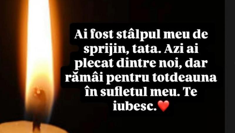 „Ai fost stâlpul meu de sprijin, tata. Azi ai plecat dintre noi, dar rămâi pentru totdeauna în sufletul meu. Te iubesc”, a scris Olga Barcari pe rețelele sociale.