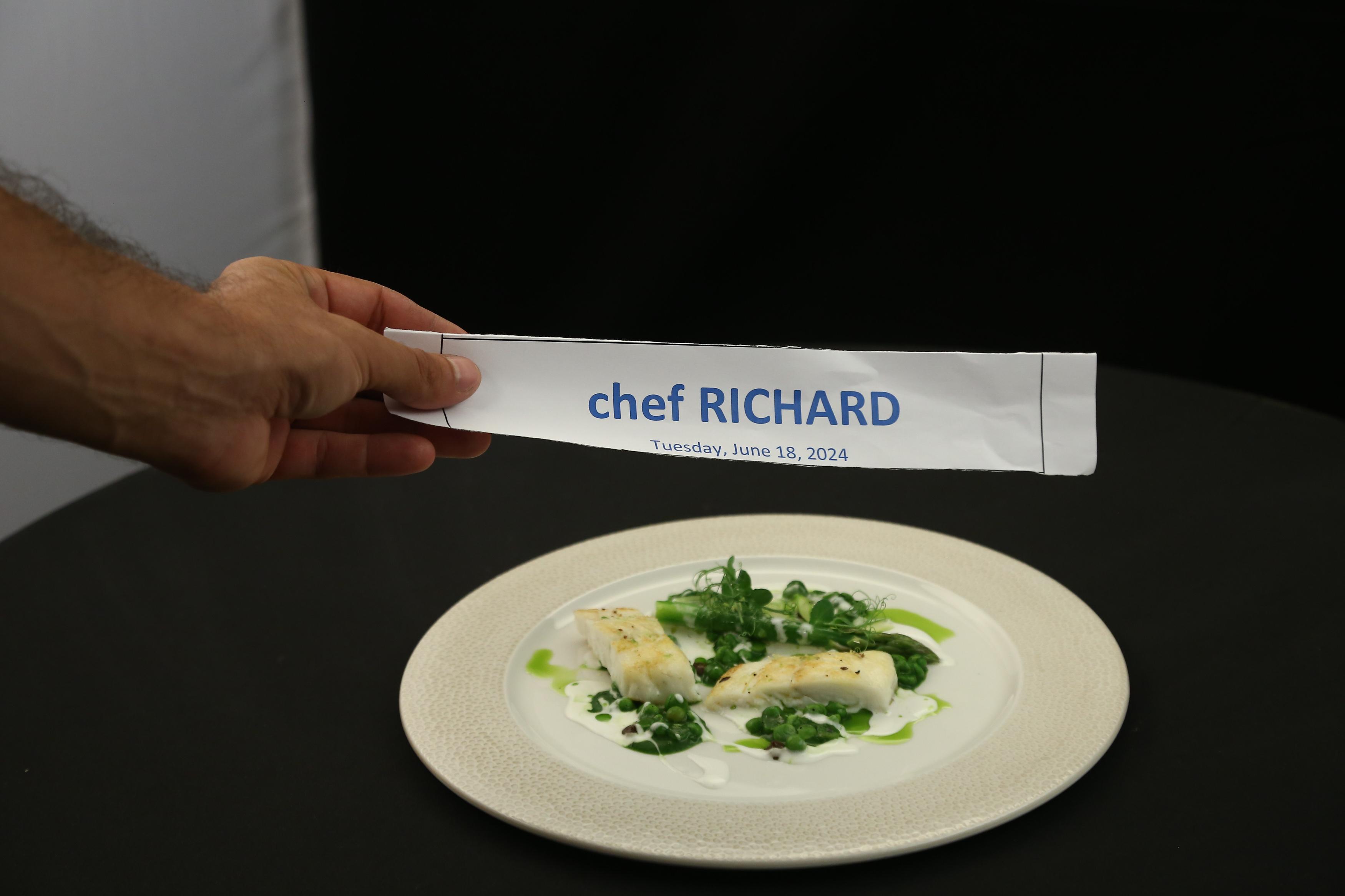 La jocul de amuletă din ediția de Chefi la cuțite difuzată pe 17 noiembrie chef Richard a gătit: ragu de mazăre, piure de lămâie arsă, maioneză de lapte și usturoi, ulei de mentă, sparanghel confiat, turbot cu sare de ienupăr și lime.