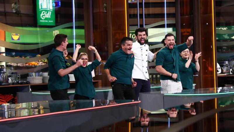 „Vocea adevărului! Bravo Ștefan!” a fost și intervenția lui Chef Richard care și-a luat echipa să sărbătorească.