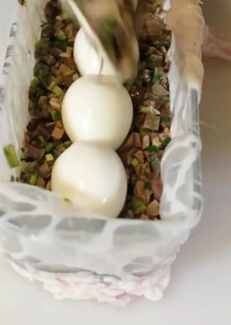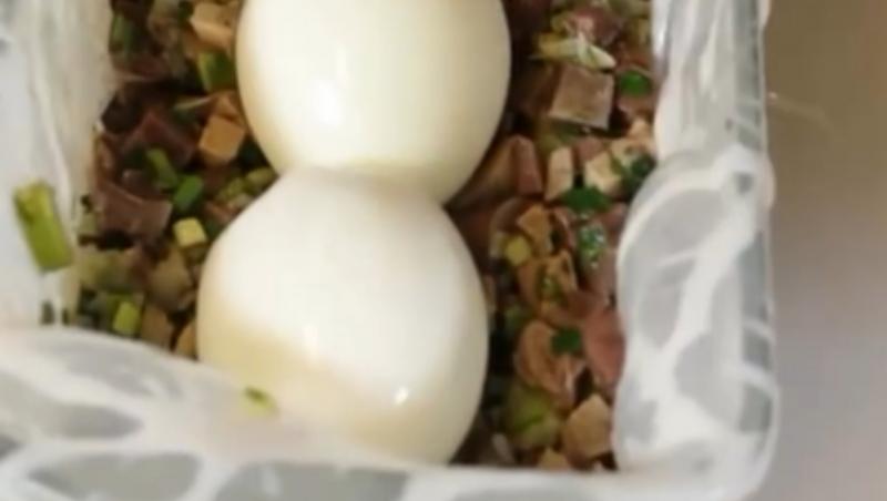 Apoi, chef Sautner a adăugat peste organe și ou, ceapa, usturoiul, mărarul și pătrunjelul, apoi a pus sare, piper și un polonic din apa unde au fiert organele și a amestecat compoziția.