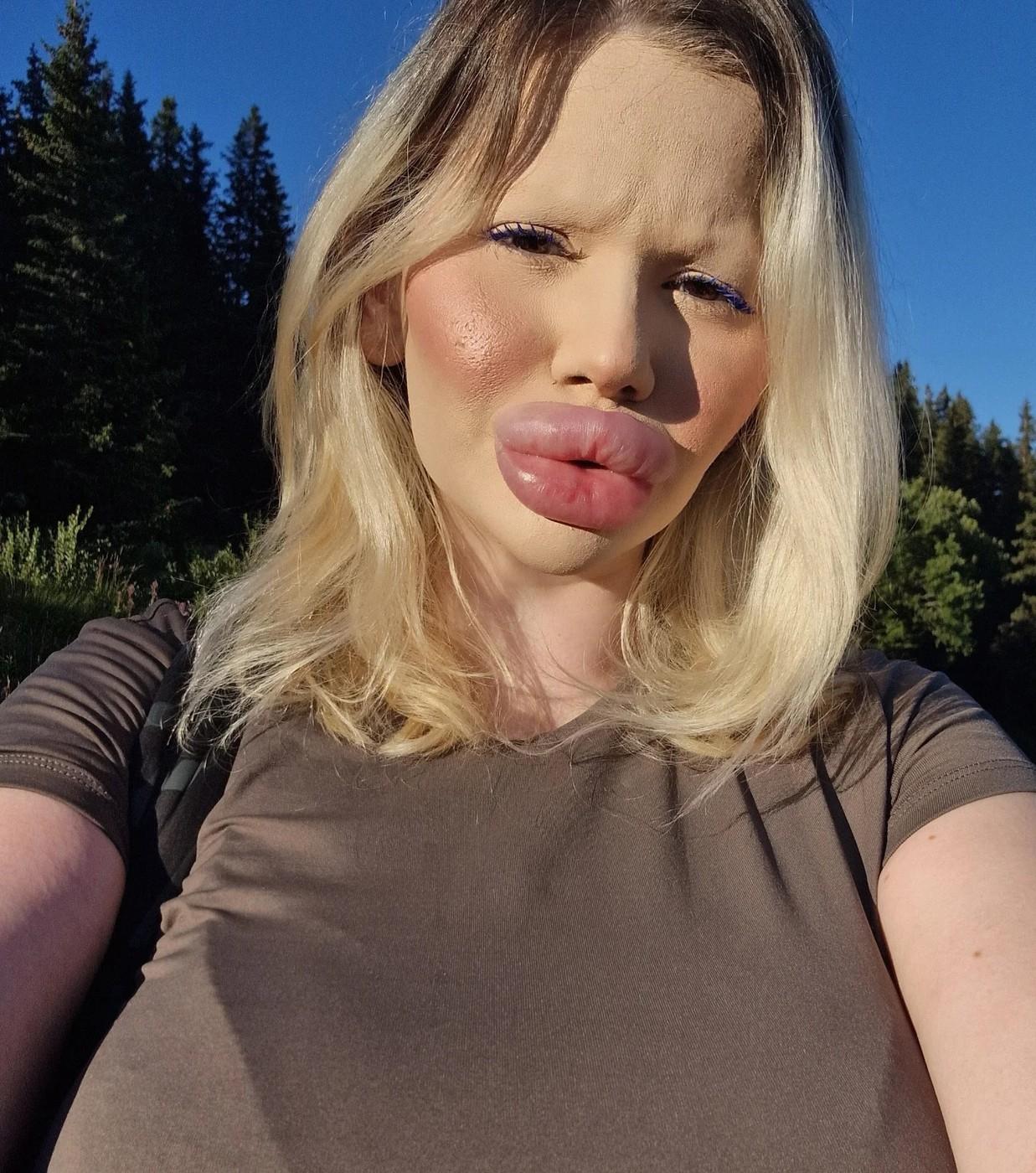 Andrea Ivanova, femeia cu cele mai mari buze din lume, a trezit noi controverse în mediul online după ce s-a filmat luând cina