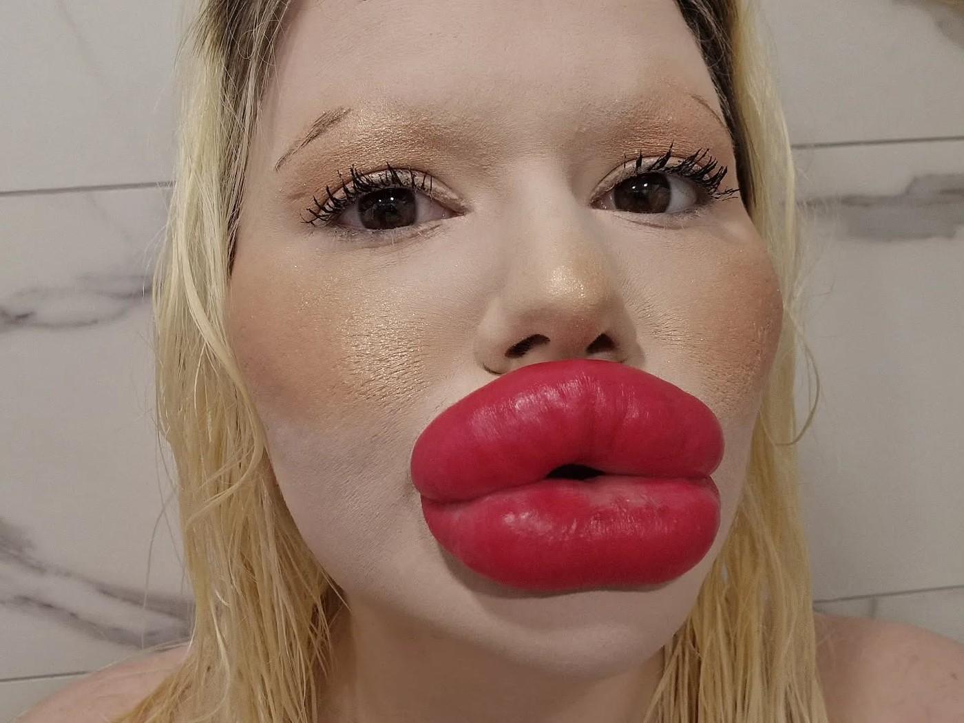 Andrea Ivanova, femeia cu cele mai mari buze din lume, a trezit noi controverse în mediul online după ce s-a filmat luând cina