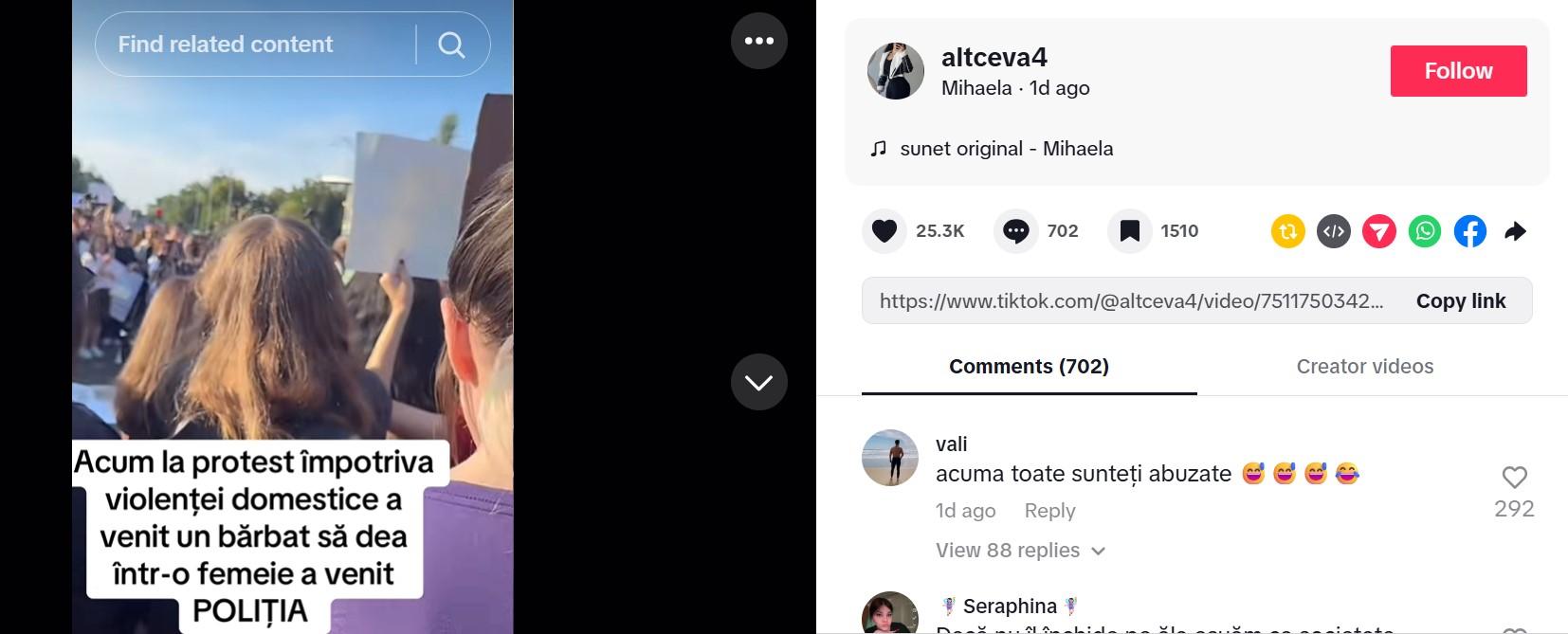 Ce a transmis tânăra agresată la protestul pentru siguranța femeilor de marți din Piața Victoriei. Ce amendă a primit agresorul