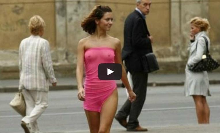 Dacă nu rusoaicele, atunci cine? A pierdut un pariu și a ieșit AȘA pe stradă! "Domnișoară, vezi că te trage curentul!" (VIDEO)