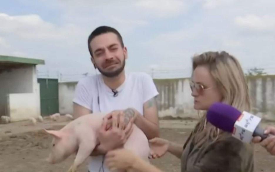 David Pușcaș a dat o probă de angajare la o fermă de porci. Ce a urmat când a dat nas în nas cu purceii. Imagini de pomină