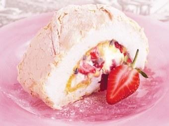 Desert delicios: Rulada de bezea cu capsuni si fructul pasiunii