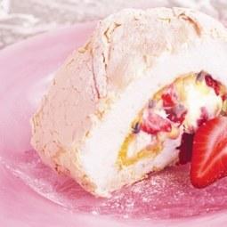 Desert delicios: Rulada de bezea cu capsuni si fructul pasiunii