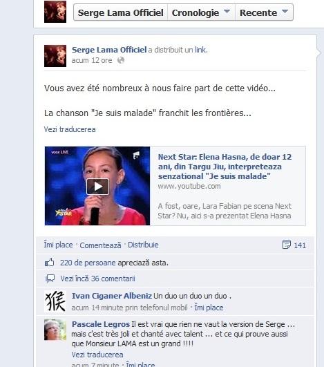 La inițiativa www.a1.ro, celebrul Serge Lama a distribuit interpretarea Elenei Hasna cu "Je suis malade", creația sa!