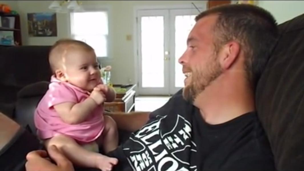VIDEO foarte emoţionant: Deşi are doar două luni, îi spune tatălui primul "Te iubesc"! Fără cuvinte...