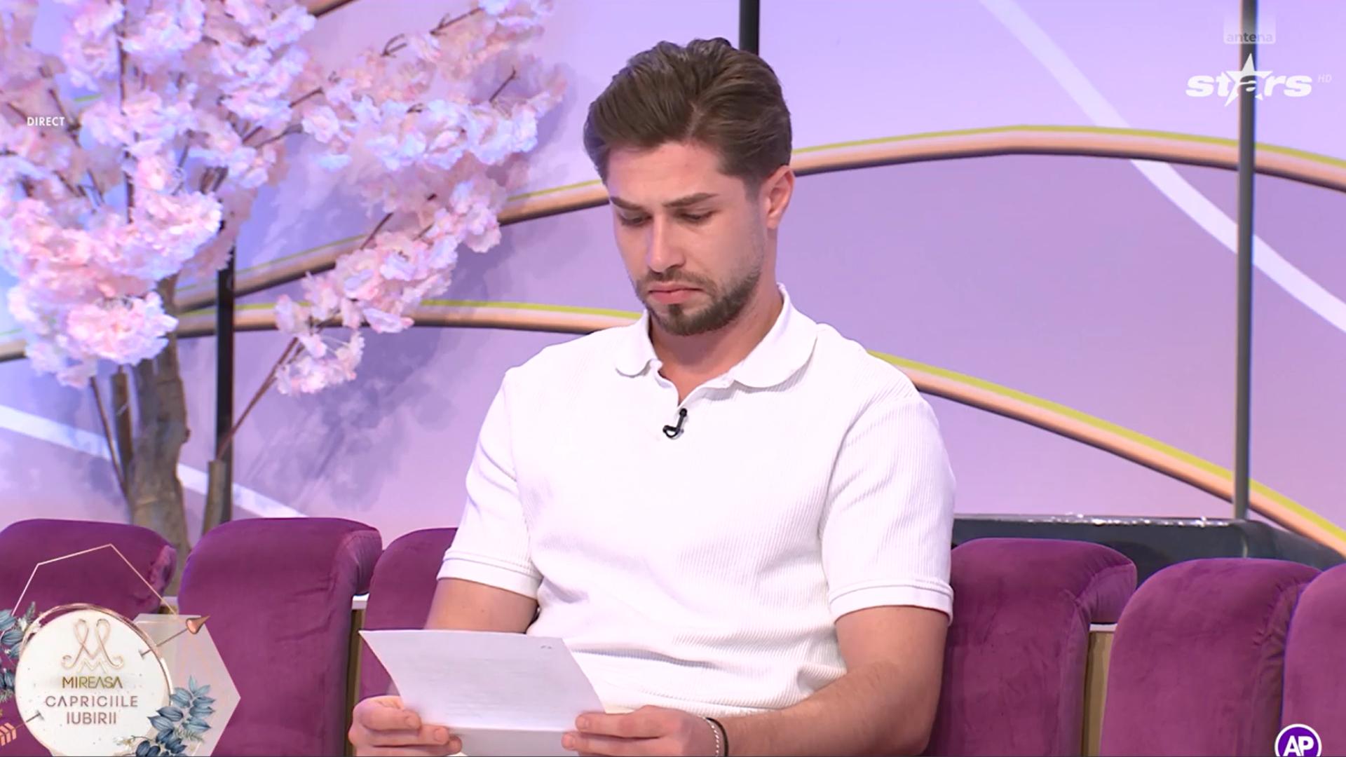 Mireasa, sezon 12. Liviu a citit în direct o scrisoare în care a fost aspru criticat. Ce i-au spus susținătorii despre Emily