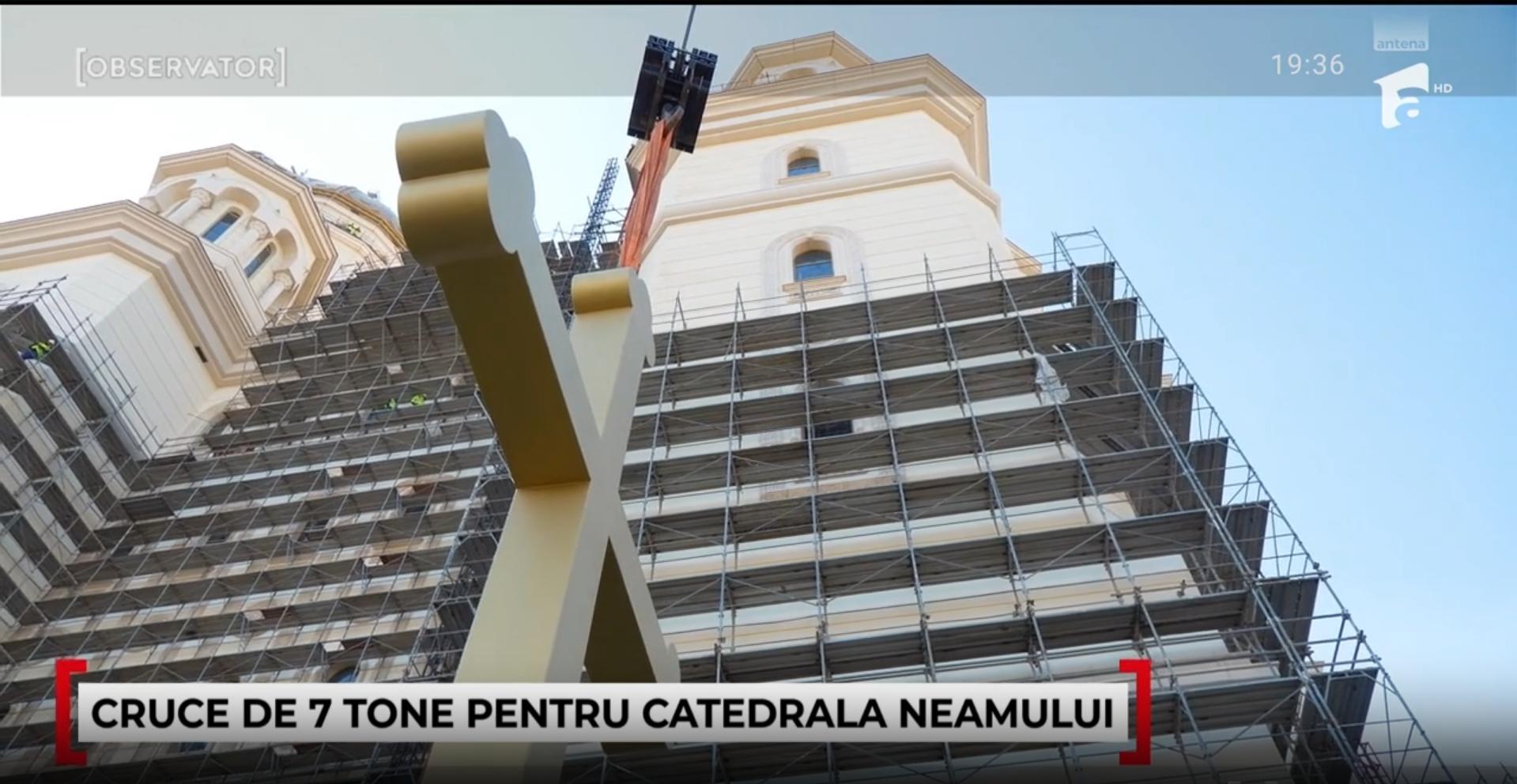 O cruce de 7 tone și 7 metri a fost montată pe turla cea mare a Catedralei Mântuirii Neamului. Cum arată și cum a putut fi montată
