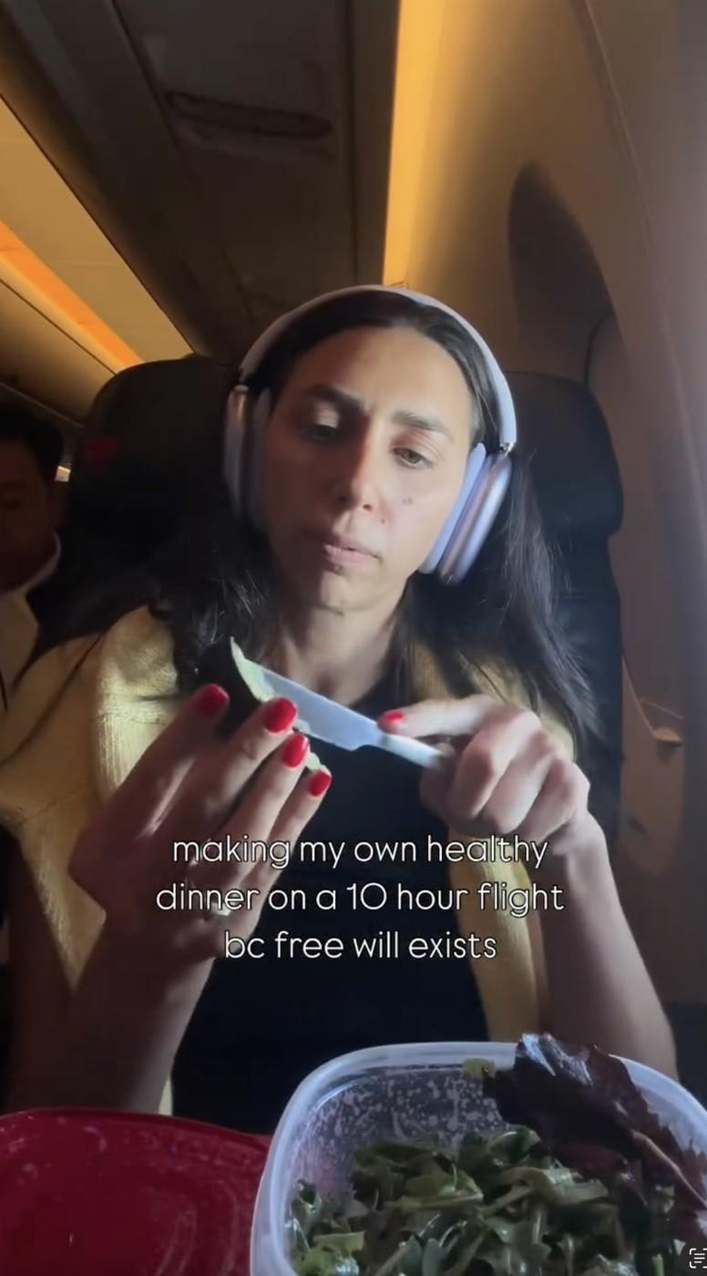 O femeie a devenit ținta criticilor, după ce și-a pregătit o salată în avion. Ce i-a nemulțumit pe călători, dar și pe internauți