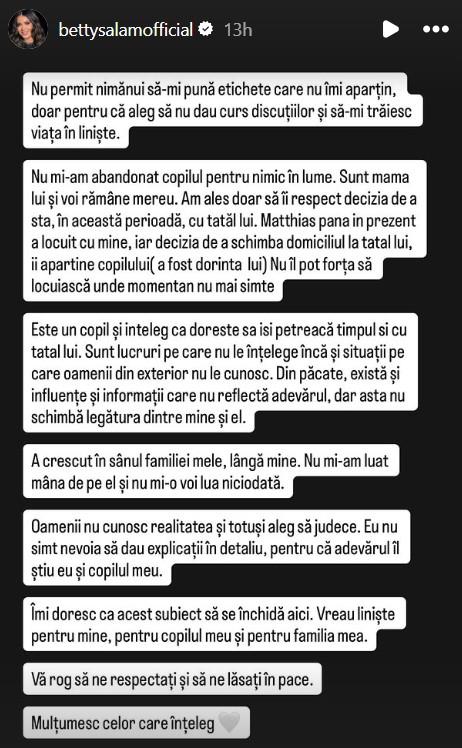 Prima reacție a lui Betty Salam după valul de hate pe care l-a primit legat de custodia fiului ei. Artista a răbufnit