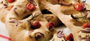 Reteta: Fougasse cu ceapa rosie, rosii cherry si rozmarin