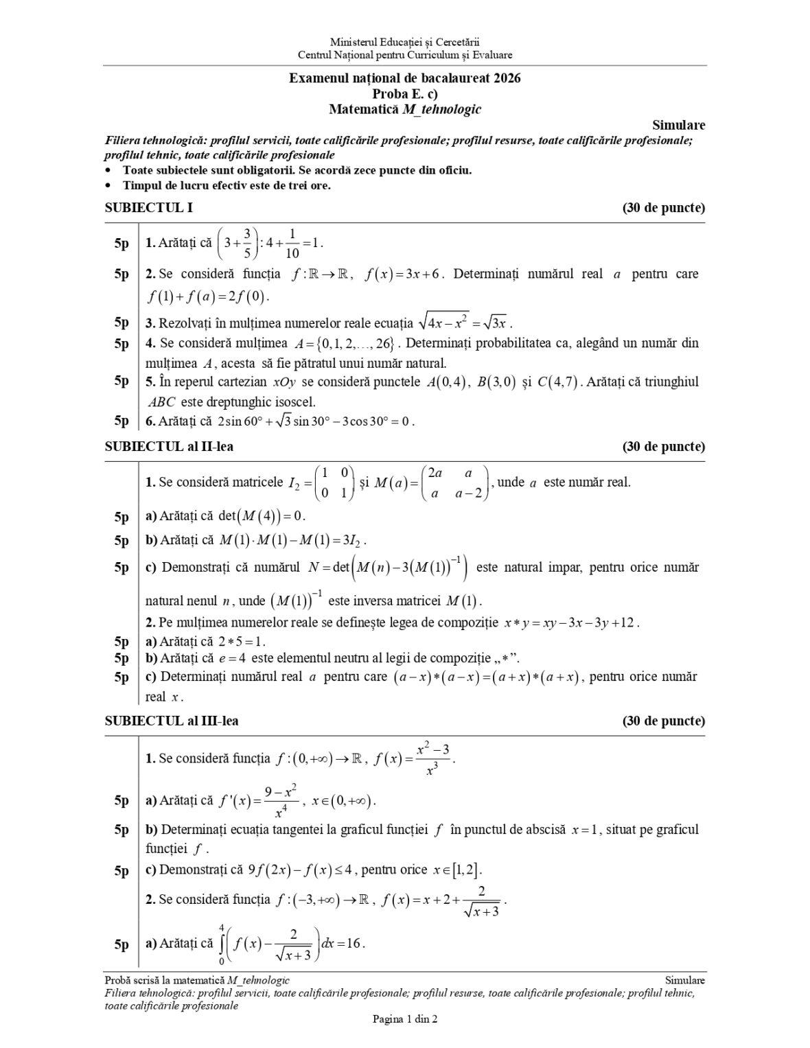 Rezolvarea subiectelor la Matematică la simulare BAC 2026. Cum vor fi punctate rezolvările conform baremului