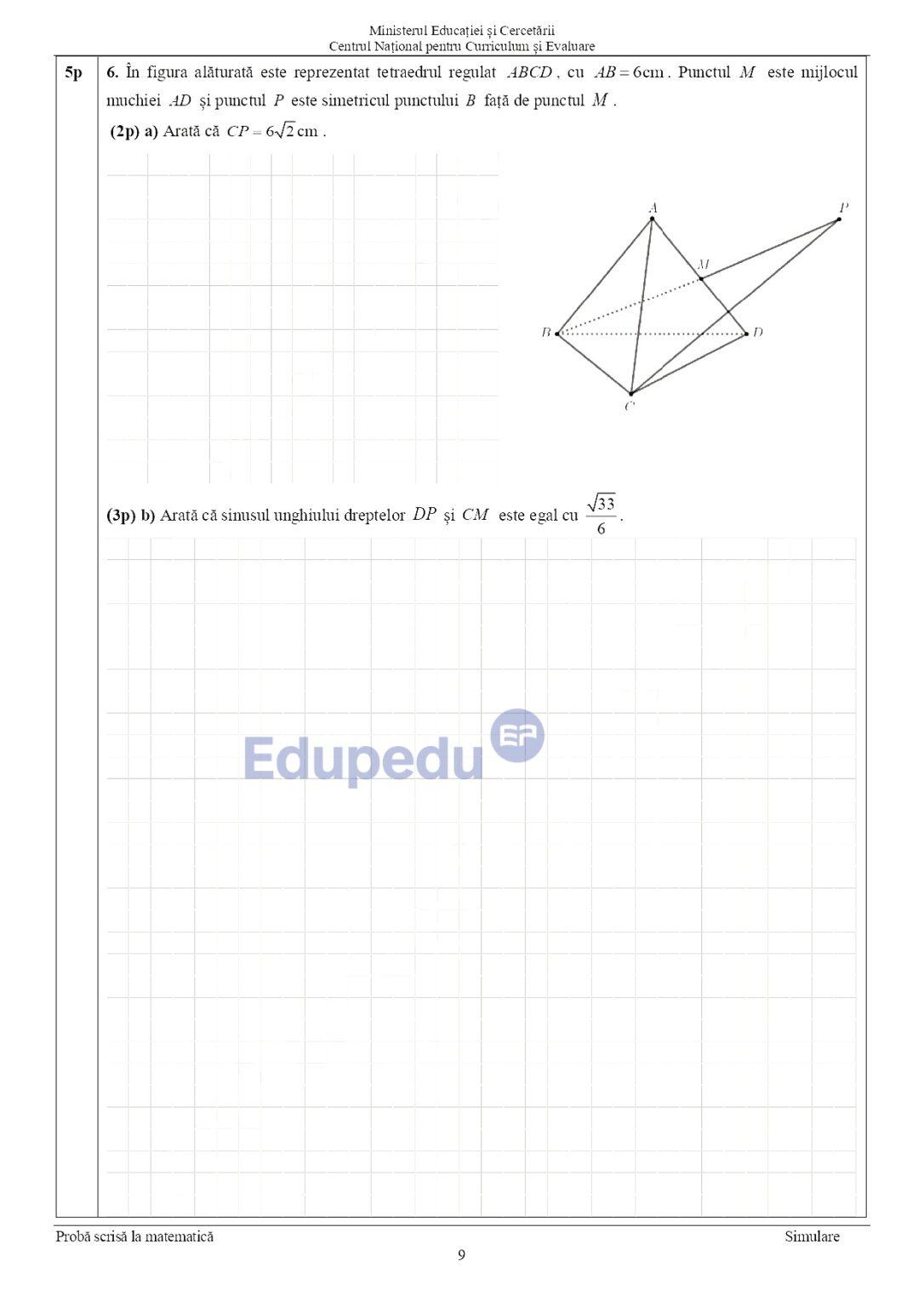 Subiecte și barem la Matematică, la Simulare Evaluarea Națională 2026. Ce exerciții au avut de rezolvat elevii claselor a VIII-a