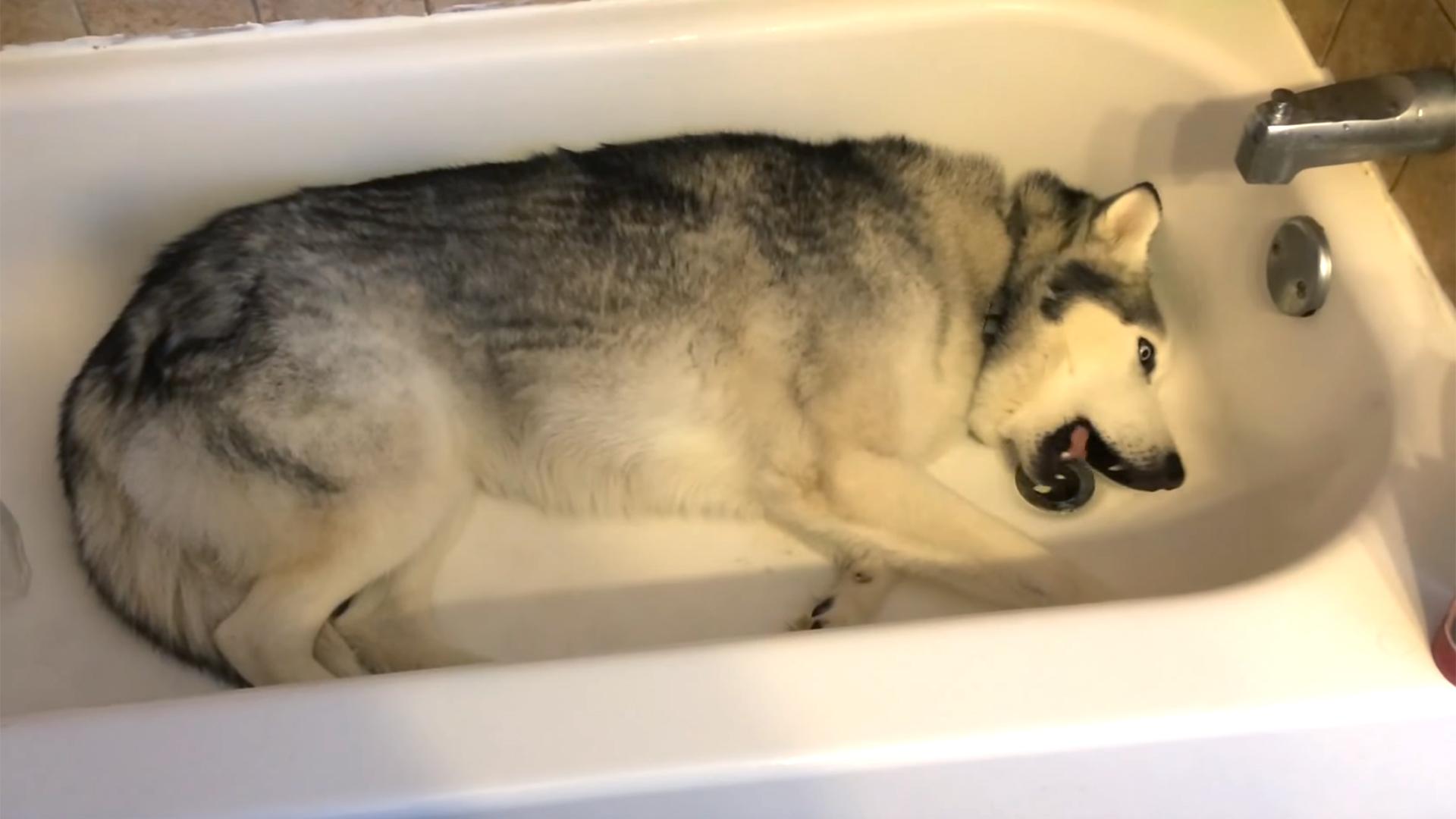 Un husky face senzație pe internet! Nu vrea să iasă din cadă, dar stăpâna găsește soluția perfectă pentru el! (VIDEO)