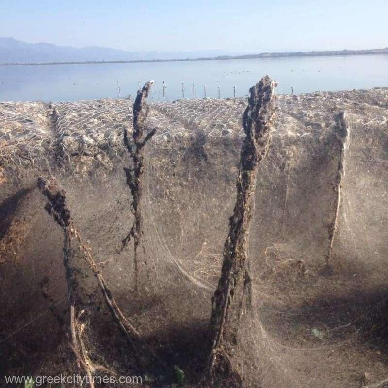 Oamenii spun că e începutul Apocalipsei! Un lac și o localitate din Grecia, acoperite de o pânză de păianjen gigantică