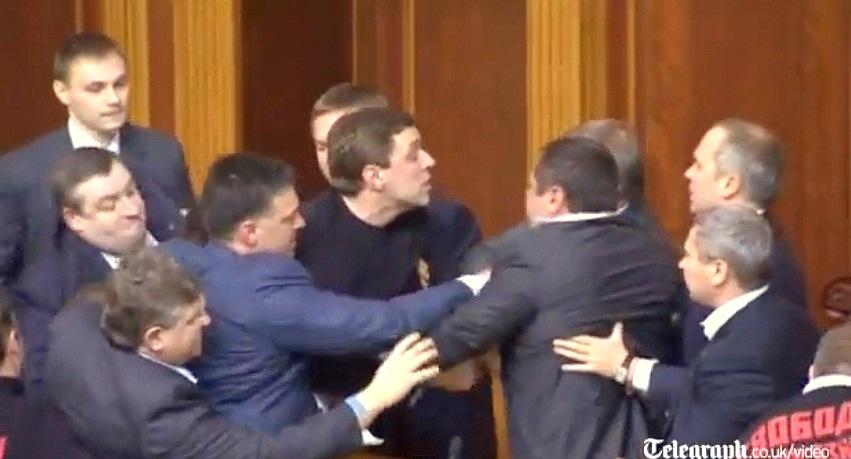 VIDEO! Bataie cu pumni si picioare in Parlamentul Ucrainei! Vitali Kliciko, simplu spectator!