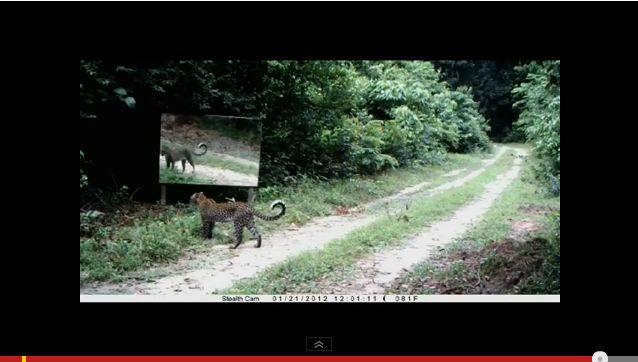 VIDEO! De ce se uita un leopard in oglinda? De curiozitate...