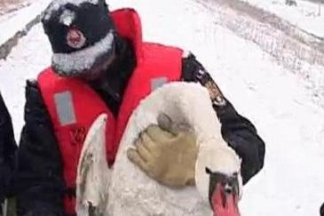 VIDEO! Lebede captive in gheata, salvate la Pitesti