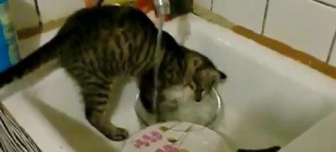 VIDEO! O pisica harnica spala vasele