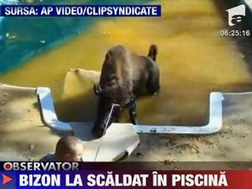 VIDEO! SUA: Unui bizon ii place scaldatul in piscina