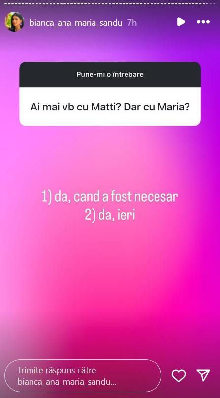 După difuzarea episodului final de la Insula Iubirii 2025, Bianca a organizat o sesiune de întrebări și răspunsuri pe contul ei de Instagram. Aceasta nu s-a ferit să răspundă curiozităților urmăritorilor săi, chiar lângă Marian.