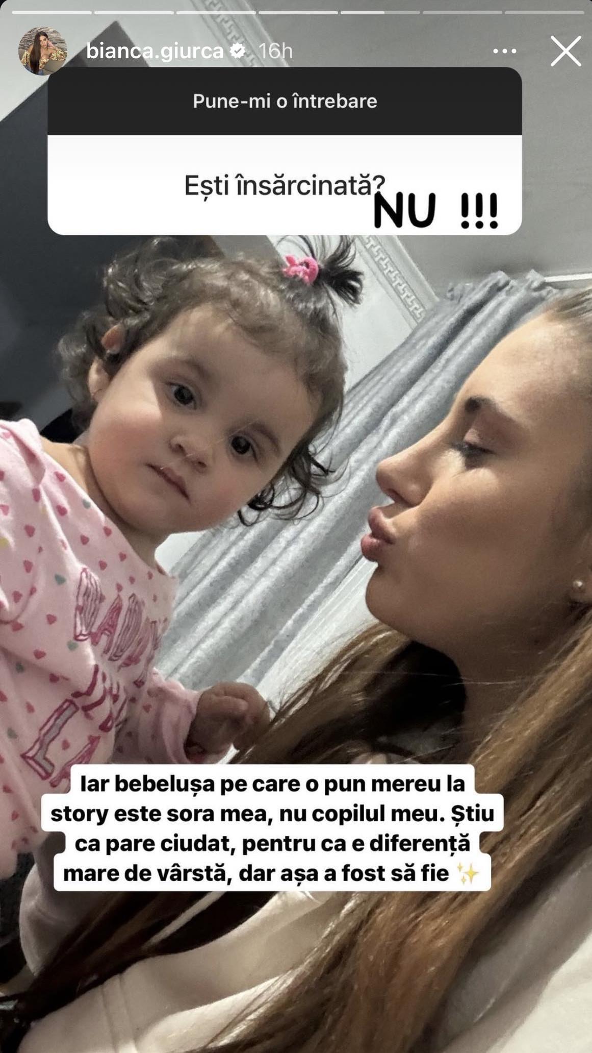 Pentru că și-a dorit să lămurească lucrurile, Bianca Giurcă a transmis tuturor că nu este însărcinată. De altfel, aceasta le-a povestit că fetița cu care se afișează în online este chiar sora ei și că nu pregătește să devină mamă.
