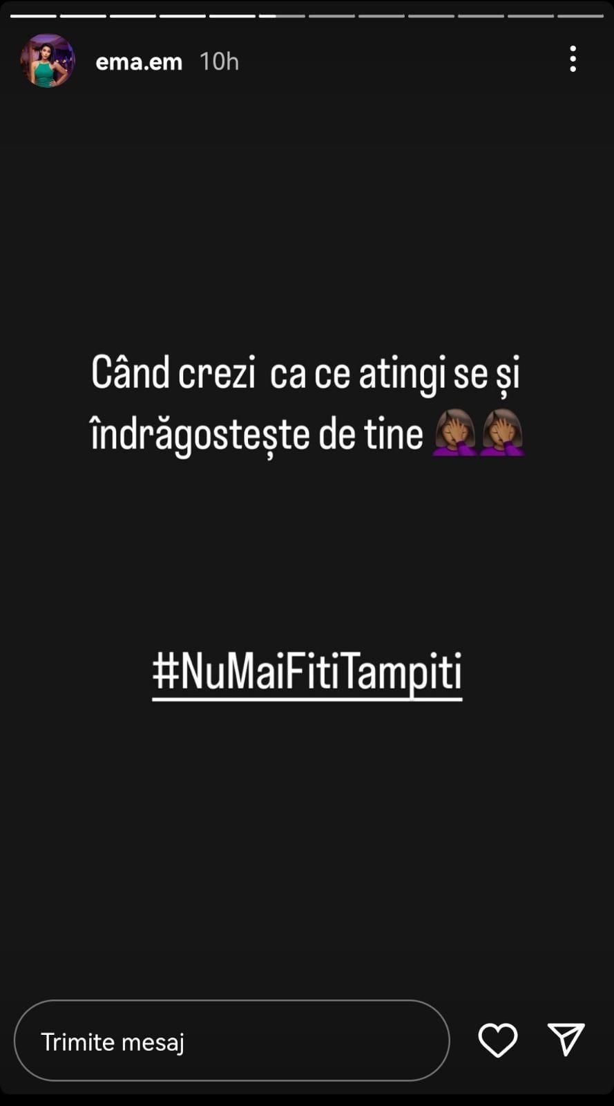 După ce în ediția din 18 august de la Insula Iubirii, sezonul 7, a fost difuzat momentul în care Răzvan o alege la date pe Daria și acesta spune la testimonial că se poate considera deja un cuplu cu Daria, Ema a reacționat pe contul său personal de Instagram. Ce i-a transmis bărbatului.