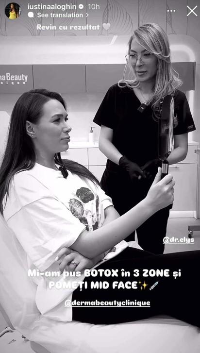 Iustina Luchian a vizitat un cabinet de estetică și a apelat la câteva intervenții. Ea a postat un story chiar din cabinetul medicului estetician în care a zis că a ales să își pună botox în trei zone ale feței, inclusiv în pomeți.