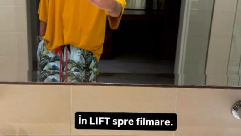 Radu Vâlcan a postat și un selfie realizat în drum spre filmare. Prezentatorul a optat pentru un tricou galben și pantaloni cu motive tropicale.