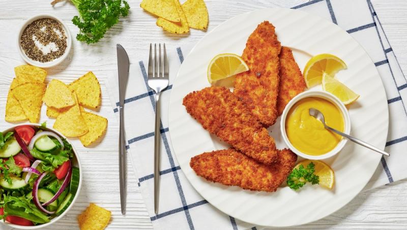 File de pește alb cu crustă crocantă de panko, parmezan și muștar