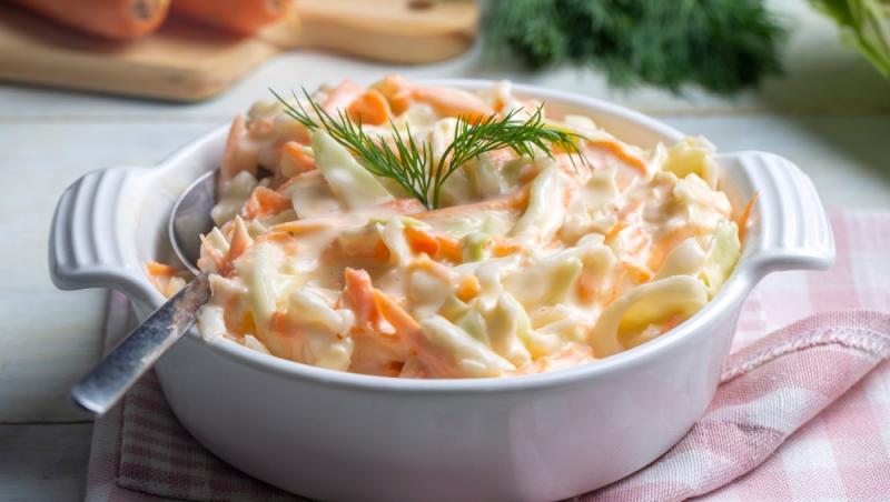 Salată de varză albă cu morcov și dressing de iaurt