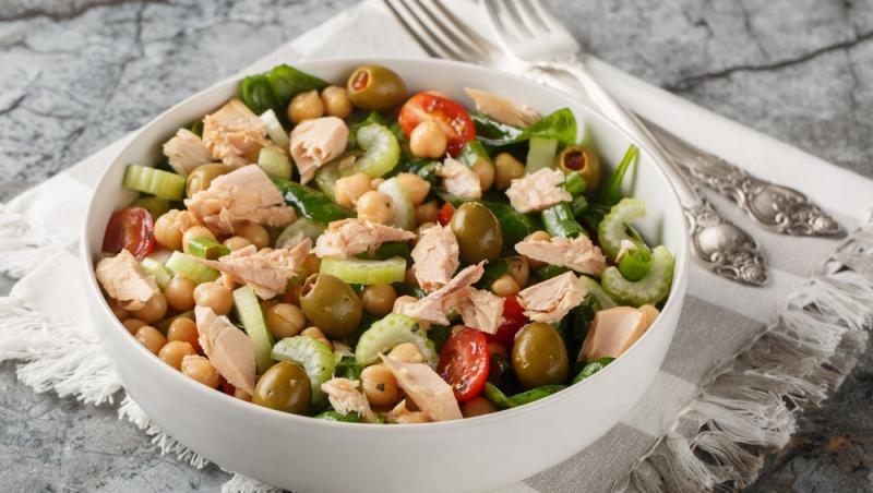 Salată de năut cu ton și legume mediteraneene