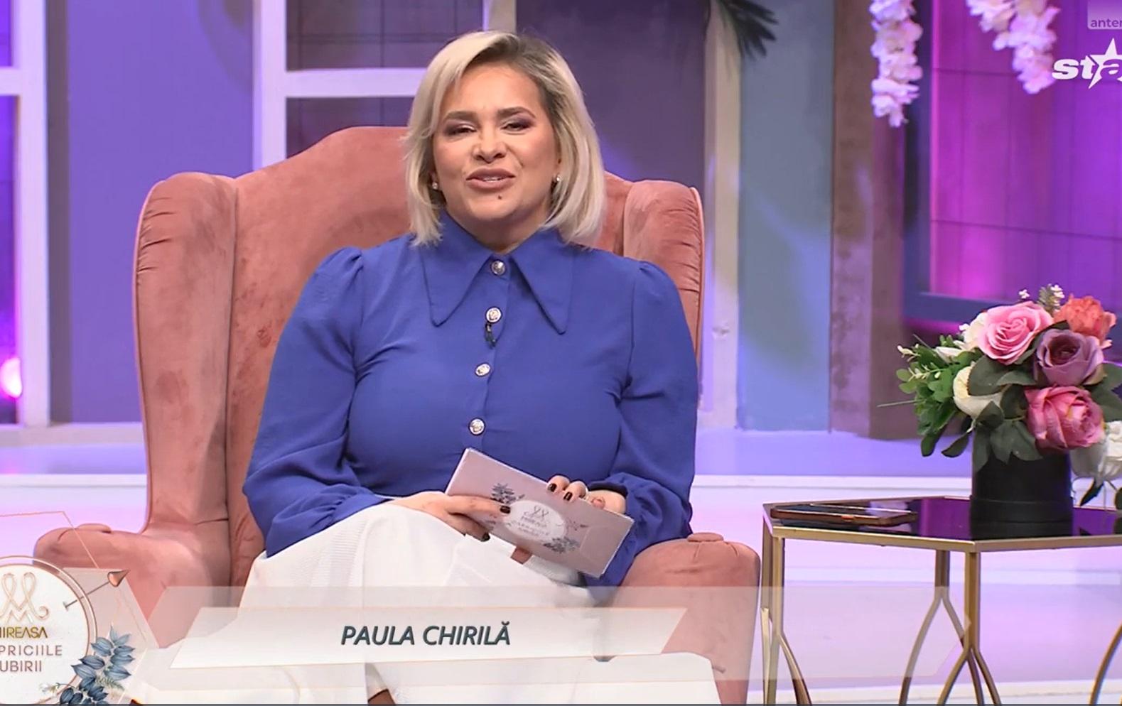 „Bun venit la o nouă ediție de Mireasa, Capriciile Iubirii. Sunt Paula Chirilă și sunt gaza emisiunii astăzi și poate și mâine. Sperăm ca Gabriela să se însănătoșească cât mai repede și să revină aici în rolul de gazdă și pe mine să mă vedeți, așa cum v-ați obișnuit, acolo pe canapea, alături de invitiatele mele de astăzi”, a anunțat Paula Chirilă, la începutul celei de-a doua ediții a noului sezon de Mireasa, Capriciile Iubirii.