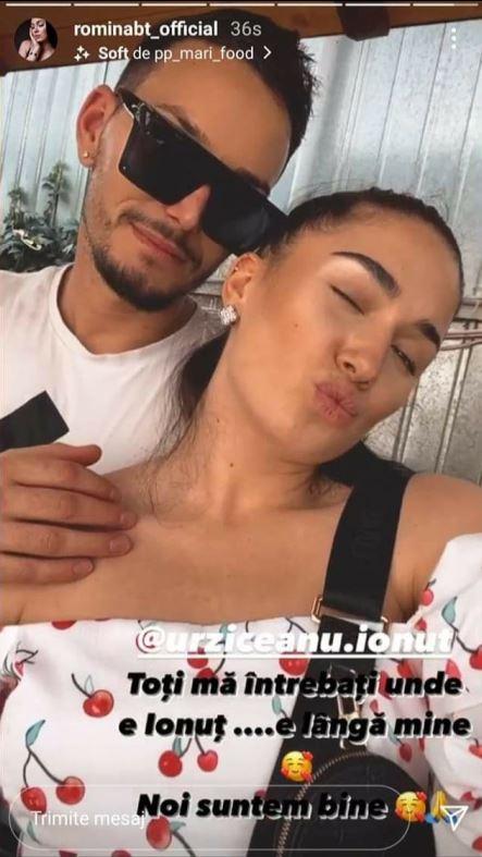 ”Toți mă întrebați unde e Ionuț... e lângă mine. Noi suntem bine”, a scris ea pe boomerangul postat pe Insta Stories.