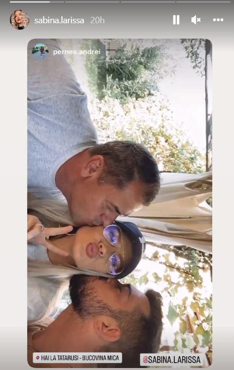 Ambii o pupă pe obraz, arătându-i iubirea de care Sabrina are atât de multă nevoie. Aceasta pare împlinită în preajma lor și alte imagini publicate pe conturile lor o arată cu zâmbetul pe buze.