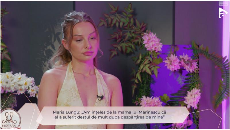 „La Marinescu aș vrea să schimb valorile și principiile. Vorbește de niște reguli ascunse, dar el nu ține cont de ele. Aș schimba comportamentul lui față de femeie. Sunt niște traume din copilărie în treaba asta. Să nu mai vadă femeia ca pe un obiect. Să nu-i mai fie frică să pună suflet, pentru că dacă l-a rănit o femeie, nu înseamnă că așa vor face toate. Eu am înțeles de la mama lui că Marinescu a suferit destul de mult după despărțirea de mine. Acum nu știu care o fi adevărul. Dacă s-ar schimba, nu aș fi dispusă să mă mărit cu el, dar aș fi dispusă pentru o relație serioasă”, a povestit Maria Lungu.