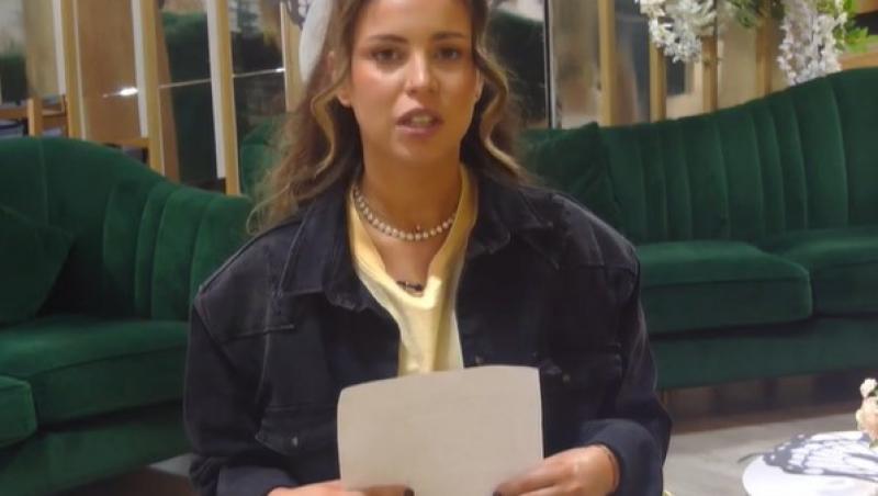 „Nu știu dacă mă vedeți sau urmăriți. Am primit scrisoarea de la voi și îmi pare rău pentru situația creată. În primul rând nu o să-mi mai dau cu părerea despre situațiile cu băieții. Am înțeles că trebuie să am încredere în el. Și prefer să am încredere în el și liniște în relație. Nu l-am acuzat că este violet. Știu că aș putea să fiu liniștea de care el are nevoie.”, a spus concurenta.