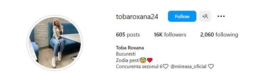 Roxana de la Mireasa sezon 6 a revenit la numele de fată pe Instagram. Ea și-a schimbat username-ul din Niță în Tobă.
