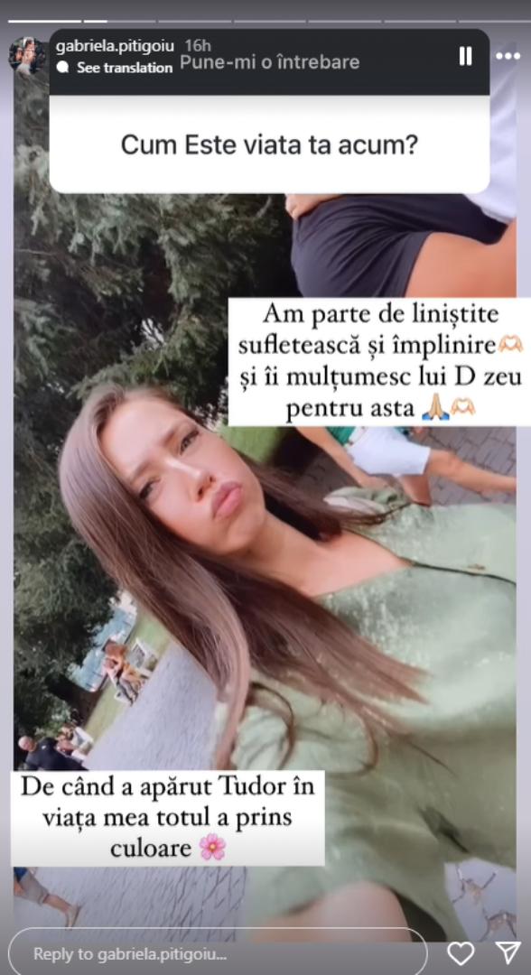 „Am parte de liniște sufletească și împlinire și îi mulțumesc lui Dumnezeu pentru asta. De când a apărut Tudor în viața mea totul a prins culoare”, a spus Gabriela.