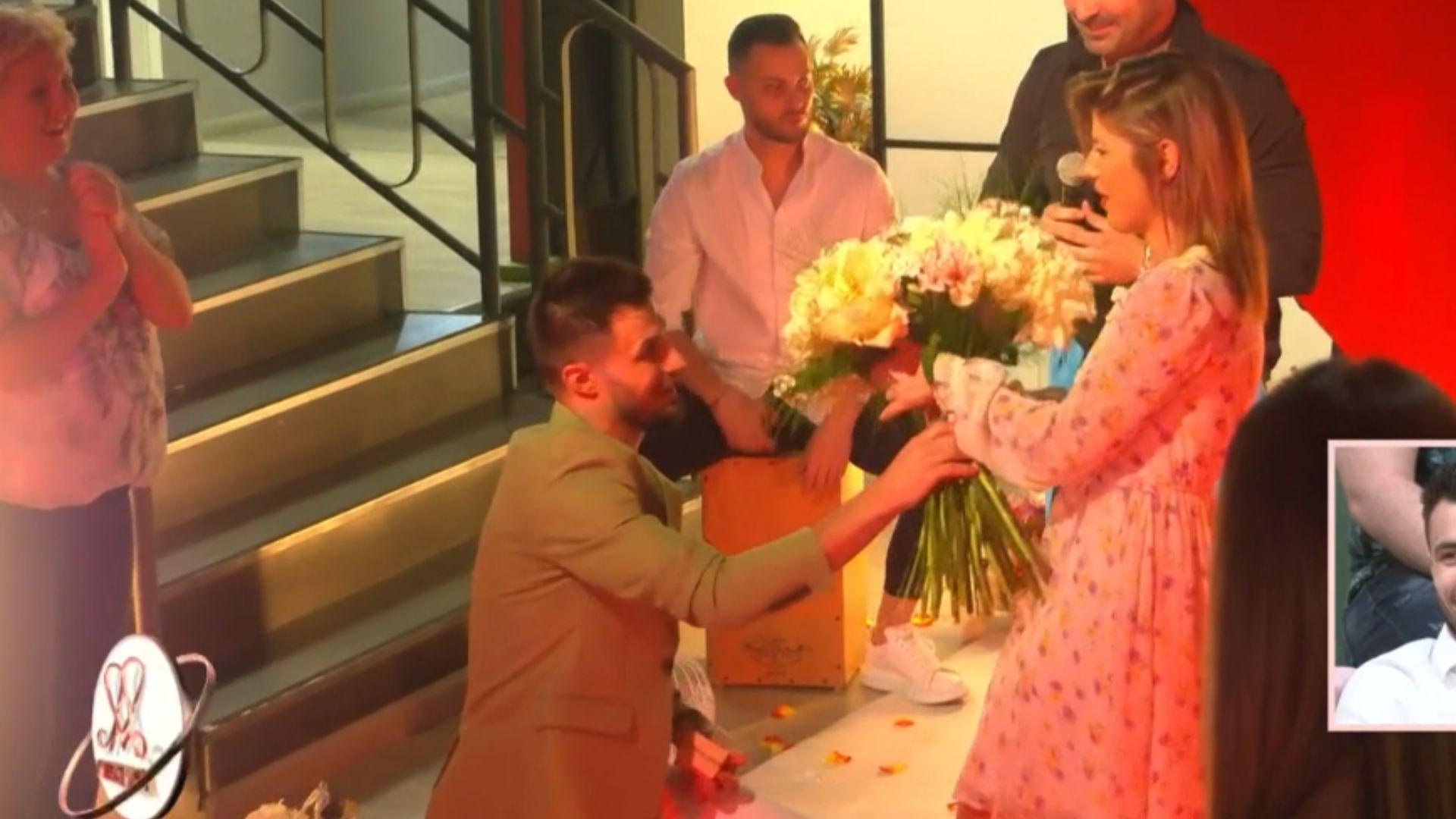 A fost momentul în care Andrei a apărut cu un buchet imens de flori și cu inelul de logodnă.