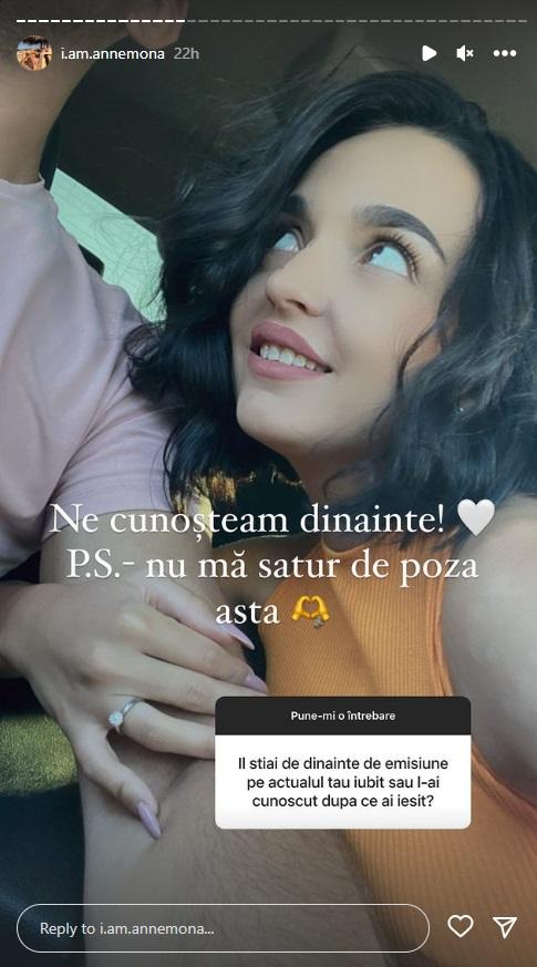 Anemona nu a publicat o fotografie cu chipul bărbatului, motiv pentru care cei care o urmăresc pe rețelele sociale au întrebat-o ce are de ascuns. Anemona a precizat că iubitul ei nu este pasionat de fotografii și de aparițiile publice, însă la un moment dat va publica și o fotografie în care i se vede fața.
