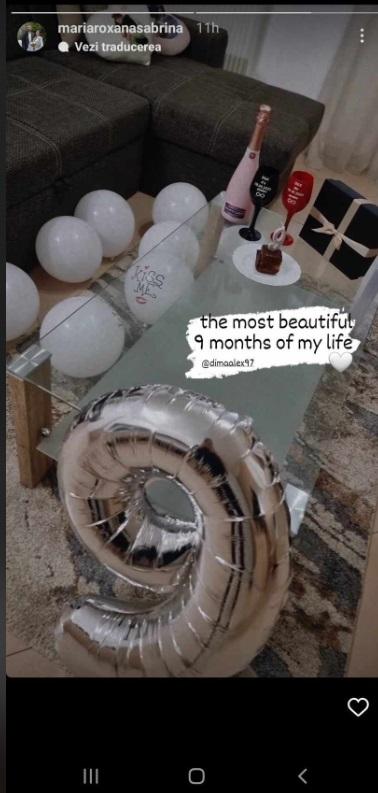 Dima și Sabrina au sărbătorit împlinirea a 9 luni de relație cu baloane, prăjituri, șampanie și cadouri.