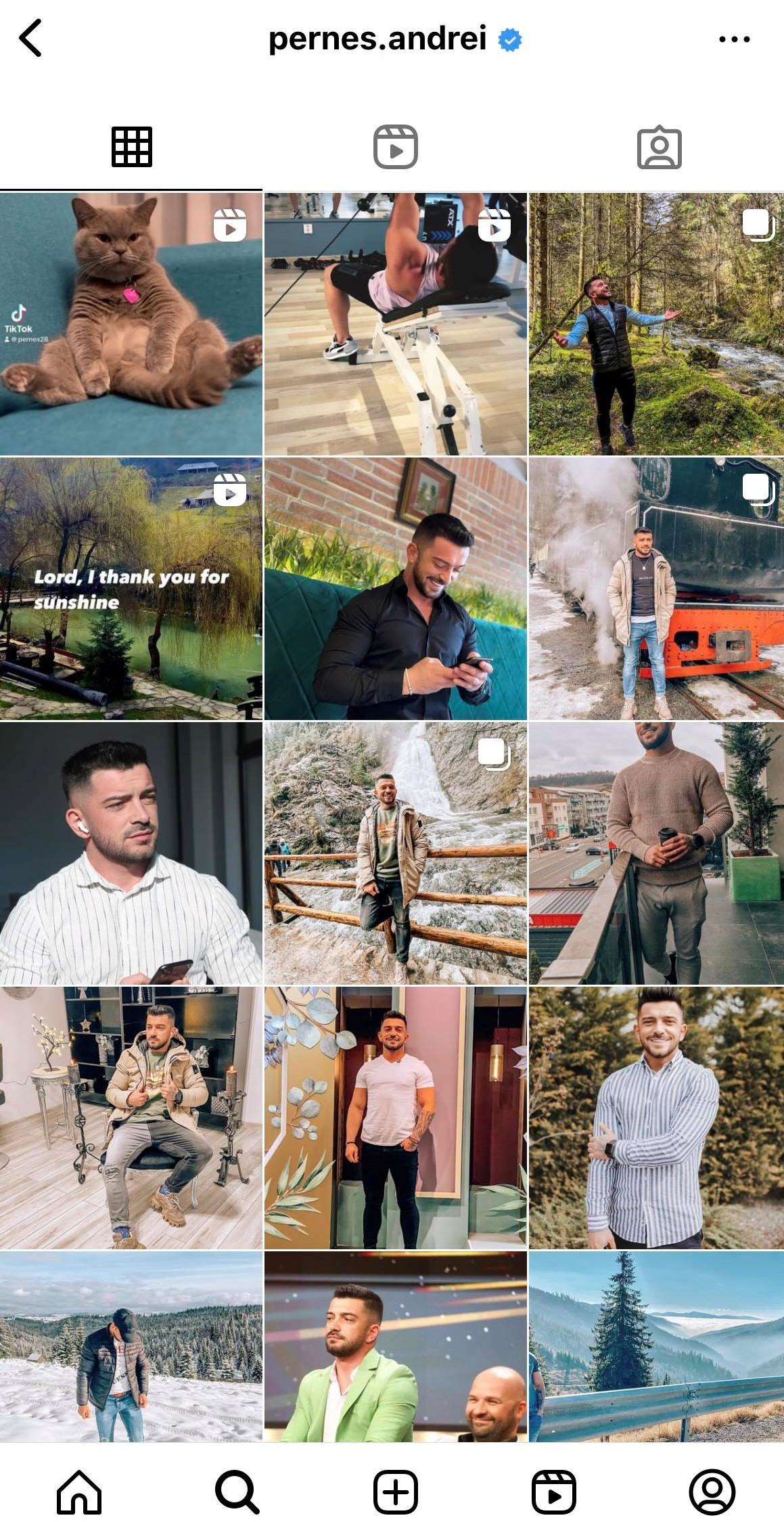 Se poate observa faptul că Perneș a păstrat pe Instagram postările în care apare singur.
